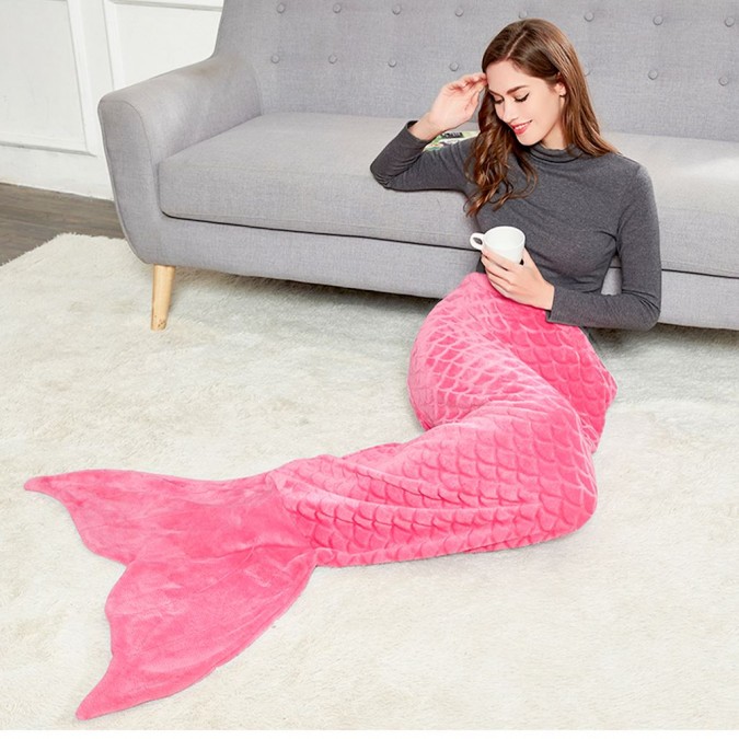 Oferujemy Państwu świetny gadżet na chłodne wieczory – Koc Syrenka. Koc jest bardzo miękki i delikatny, przyjmenie otuli nas w jesienno-zimowe wieczory. Koc wykonany jest w 100% z mikrofibry. Materaiał jest bardzo delikatny, bez obaw może być użytkowany przez alergików, dzieci oraz osoby o bardzo wrażliwej skórze. Koc Ogon Syrenki ma naprawdę interesujący, unikalny design dzięki czemu jest świetnym pomysłem na prezent. Syreni Kocyk przyjemnie i dokładnie otula, nie zsuwa się, a przy tym stanowi oryginalną ozdobę każdego pomieszczenia.