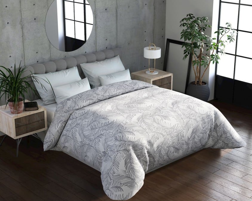 Kołdra drukowana LENA wykonana została z mikrofibry. Gramatura wypełnienia to 300g/m2. Nakrycie charakteryzuje się oryginalnym designem (na białym, gładkim tle umieszczone zostały jasnoszare motywy roślinne) oraz wysoką jakością wykonania.