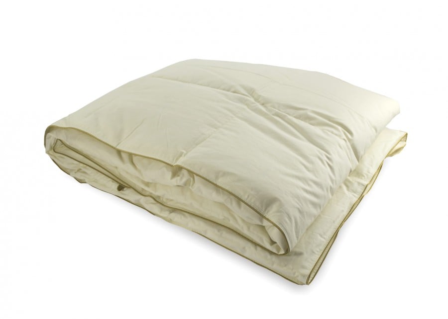 Kołdra wykonana jest z inletu – bawełnianej tkaniny silnie gładzonej. Przeszyta jest w drobną kratkę równomiernie wypełnioną puchem gęsim.