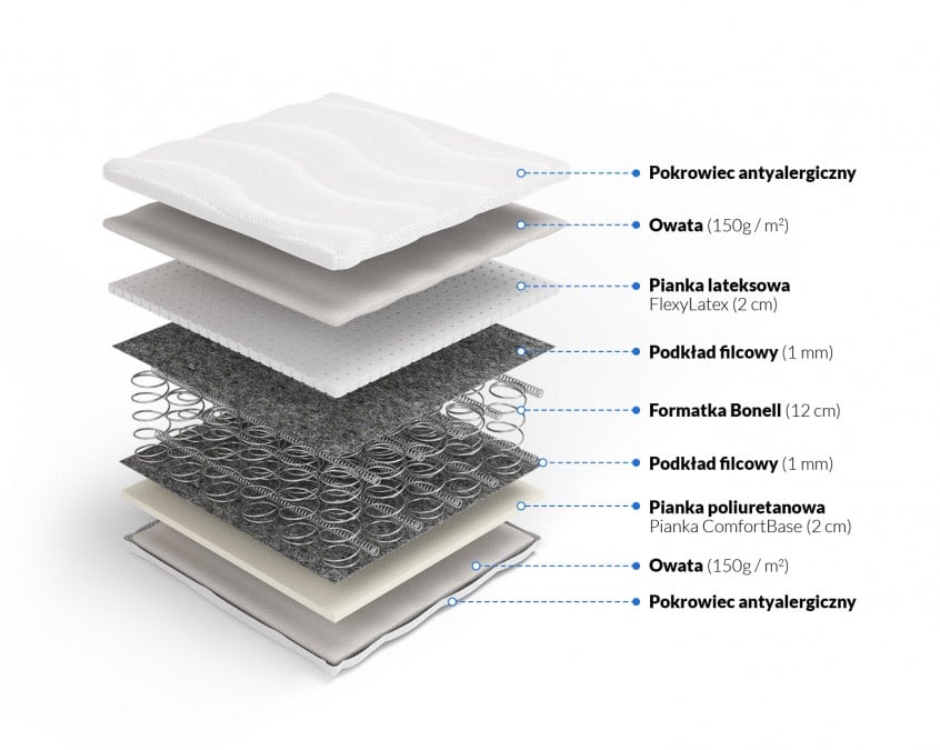 Materace z formatką bonell nie są podzielone na 7 stref twardości.