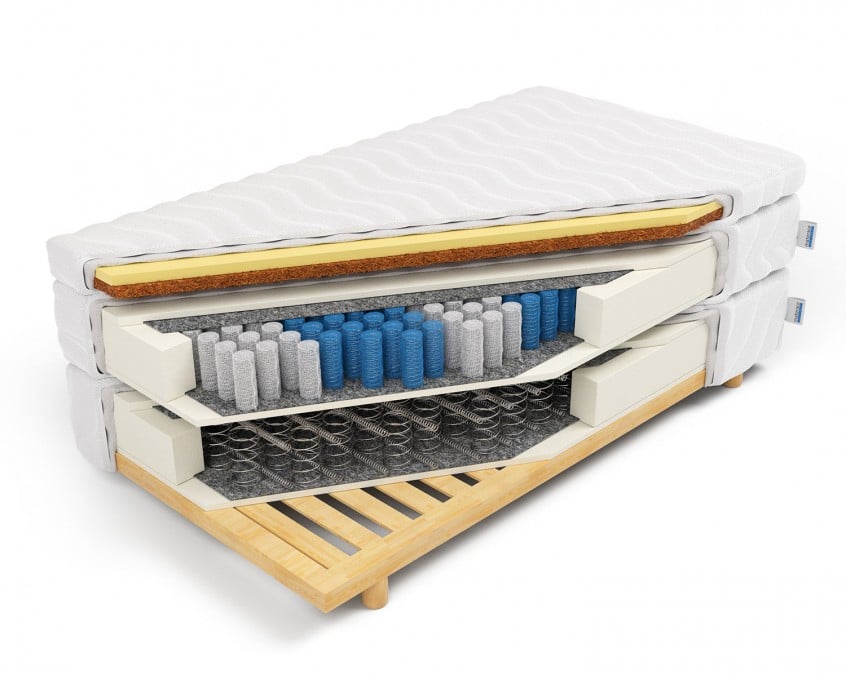 Materace w naszym sklepie sprzedajemy razem z antyalergicznym pokrowcem. Pokrowiec z materaca nawierzchniowego oraz kieszeniowego z łatwością można ściągnąć i samodzielnie wyprać. W przypadku dolnego materaca bonellowego nie ma takiej możliwości, gdyż na stałe jest przymocowany do stelaża.