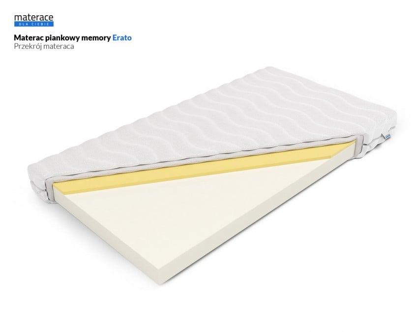 Materac Erato to model wykonany z 10 cm pianki ComfortBase (poliuretanowej) oraz 2 cm pianki PerfectSuite (VISCO/memory). Grubość wkładu materaca wynosci 12 cm. Łączna wysokość materaca zależy od wybranego pokrowca. Produkcja materaca następuje w ciągu 24h od zaksięgowania środków na naszym koncie. Produkt objęty jest 2-letnią gwarancją.