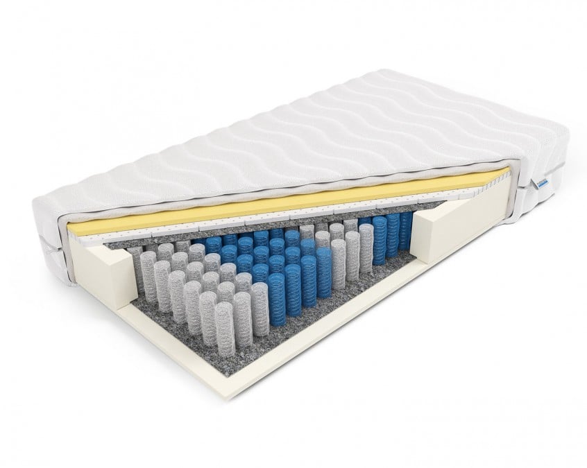Dzięki podziałowi na 7 stref twardości materac układa się idealnie pod ciałem, zapewniając prawidłowe podparcie dla poszczególnych części ciała.