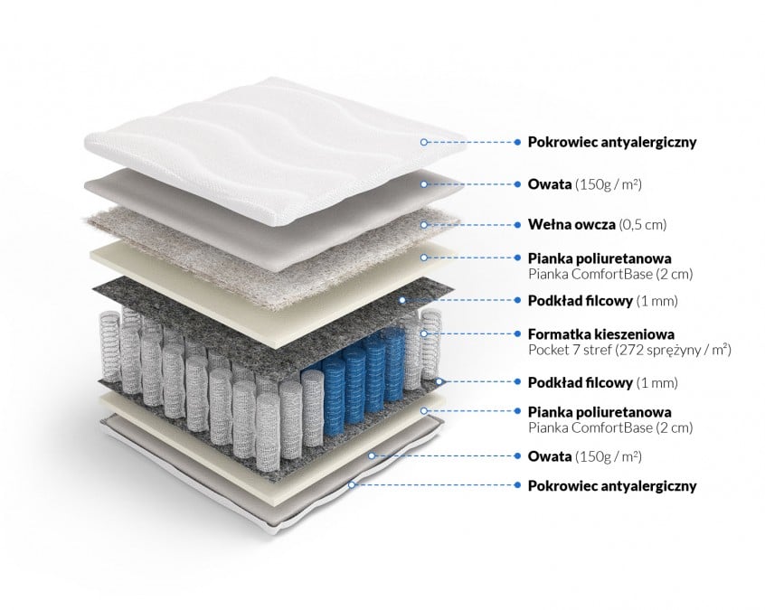 | sprężynowy kieszeniowy/pocket 7 stref | tak |