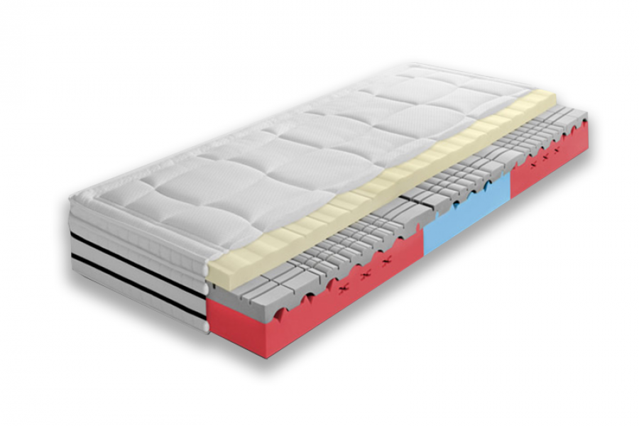 Bazową część materaca wykonano z bloku pianki wysokoelastycznej AVENA o grubości 12 cm. Jest to pianka bardzo wysokiej jakości, która charakteryzuje się elastycznością oraz dużym stopniem przewiewności. Została ona ułożona w trzech segmentach o zróżniocowanej gęstości, co sprawia, że materac doskonale dopasowuje się do sylwetki. Środkowa warstwa materaca została zbudowana z zimnej pianki o grubości 8 cm, podzielonej na 7 stref twardości. Dzięki temu materac zapewnia odpowiednie podparcie dla konkretnych partii ciała. Pianka ta, wykonana przy użyciu specjalnej technologii, jest bardzo przewiewna i perfekcyjnie dopasowuje sie do kształtu ciała. Wierzchnia część materaca została zbudowana z pianki termoelastycznej Visco o grubości 5 cm. Pianka ta, pod wpływem temperatury ciała i nacisku, doskonalne dopasowuje się do kształtu sylwetki. Niweluje ona wszelkie uciski w okolicach bioder czy karku. Materac posiada właściwości ortopedyczne oraz antyalergiczne. Materac nie przenosi drgań dzięki czemu jest dobrym rozwiązaniem dla par.