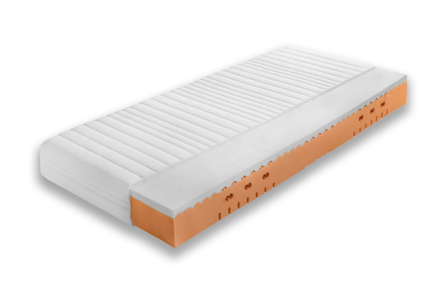 Powierzchnia materaca jest podzielona na 7 stref twardości, co zapewnia odpowiednie podparcie dla kręgosłupa.