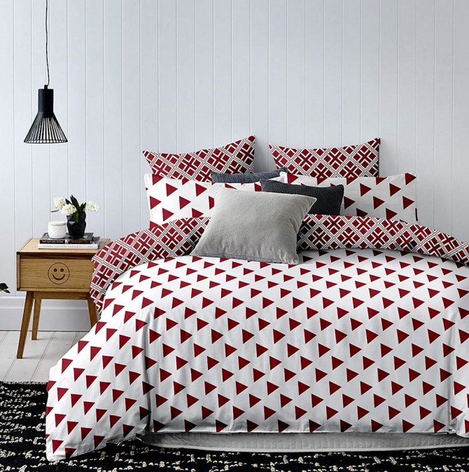 Oferujemy Państwu komplet pościeli TRÓJKĄTY, w skład którego wchodzi poszwa na kołdrę oraz jedna lub dwie poszewki na poduszki. Naszym klientom proponujemy pościel TRÓJKĄTY do wyboru w różnych rozmiarach dostępnych w tabeli po prawej stronie – pozwoli to dobrać odpowiedni rozmiar do naszych wymagań. Zarówno poszwa jak i poduszki wyposażone są w zamek błyskawiczny, dzięki czemu w łatwy sposób możemy ściągnąć pościel do prania i zadbać o jej odświeżenie. Głębokie kolory wzorów to zaleta nowoczesnej technologii kolorowania materiałów. Technologia ta wykorzystuje proces trójfazowy, więc kolory nie wybielają się po praniu.
