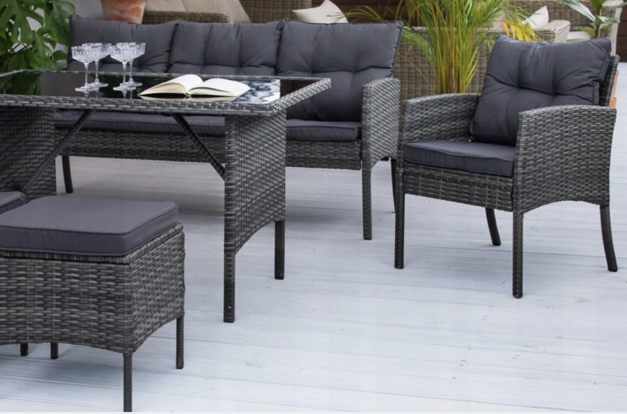 Komplet wypoczynkowy nadaje się zarówno do użytku zewnętrznego, jak i wewnętrznego.