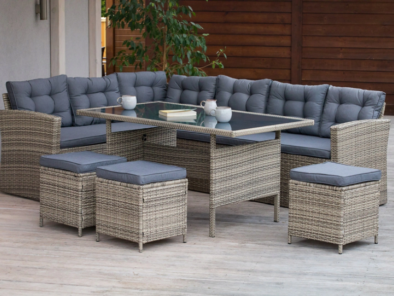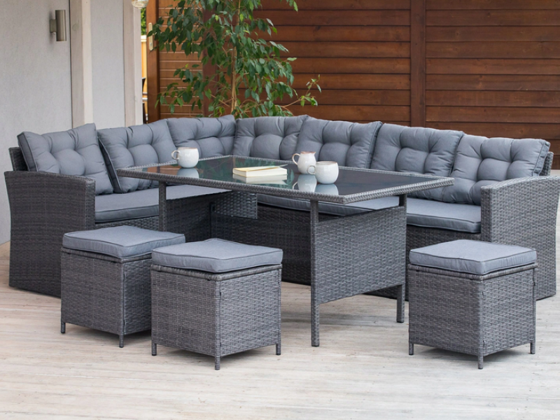 Zestaw mebli ogrodowych TAJLO w kolorze ciemnoszarym to nowoczesne rozwiązanie do każdego ogrodu. Charakteryzuje się wytrzymałą konstrukcją oraz uniwersalnym wyglądem. Komplet wypoczynkowy nadaje się zarówno do użytku zewnętrznego, jak i wewnętrznego. WYKONANIE: Konstrukcja mebli wykonana jest z solidnej, wytrzymałej stali oplecionej materiałem technorattanowym, imitującym wzór naturalnej plecionki, Dzięki wlaściwościom technorattanu zestaw wypoczynkowy TAJLO pozostaje odporny…